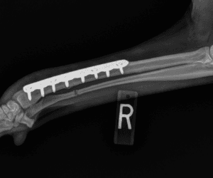 Unfortunately, just like people, fractures (broken bones) are common in both dogs and cats. There are many different types of fractures and pre-operative assessment of radiographs is essential to plan the specific surgical fixation required. Although fractures can be traumatic for both pets and their owners, with proper stabilization and postoperative care, fractures will heal and the pet can return to normal.